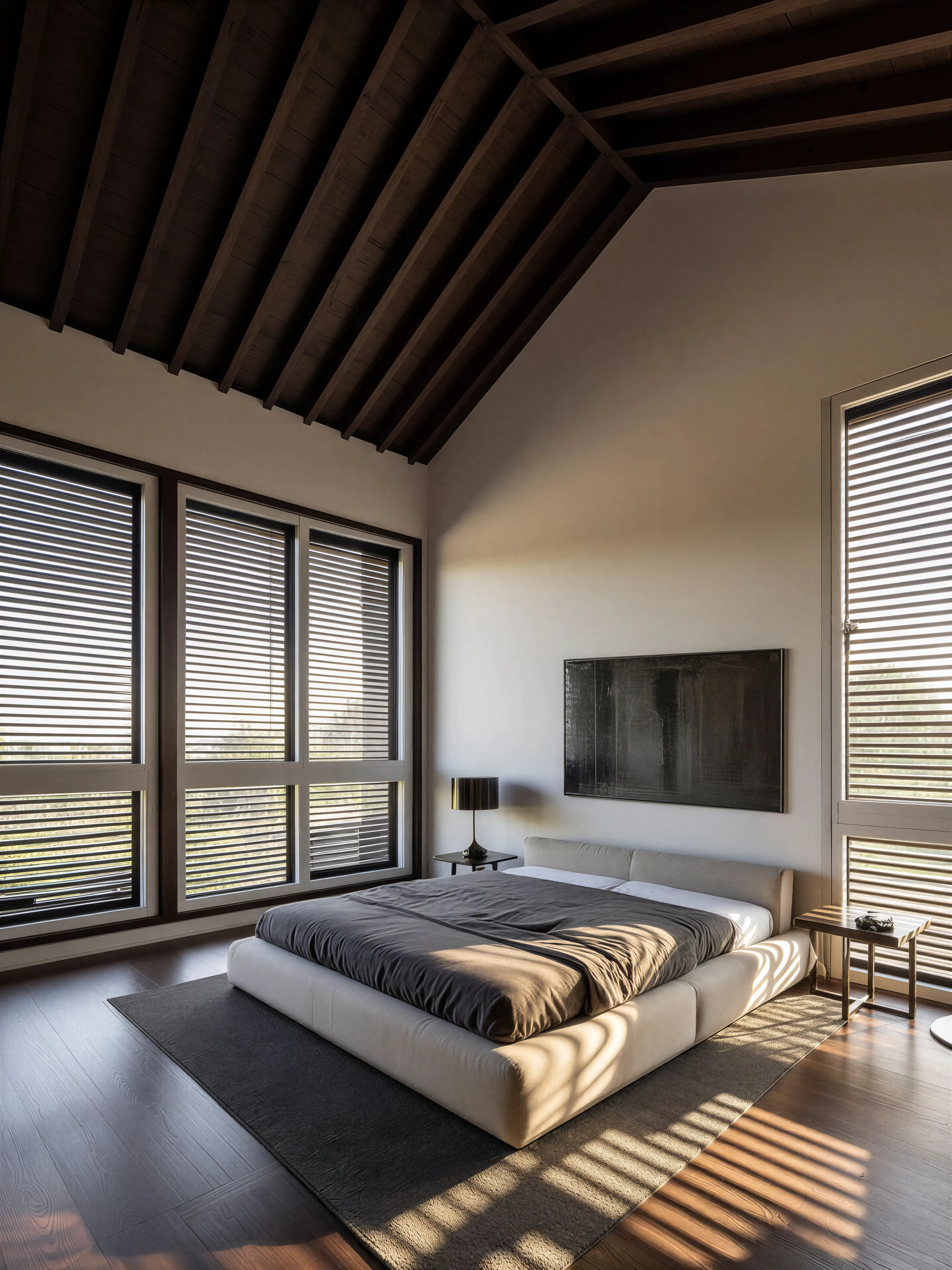 The white wood base defines the public spaces of the addition and provides an expansive, light atmosphere that, in conjunction with the open plan and the glass openings, extends the living spaces into the garden. The second floor’s darker wood siding defines the bedroom quarters and their servant spaces and provides for a warmer atmosphere. Conversely, volumetric layering occurs with the stacking of box and gabled volumes, laying one on top of each other to establish contrasts in form and contextual relationships. The gabled roof allows us to reference the existing 1930’s house inclined roofs. Finally, the balcony is reinterpreted as a flattened screened space which communicates the sleeping quarters with the front entry courtyard garden in the same manner as the balconies of St. Augustine’s houses communicated with the street level. As a result, minimalist hybridization is formulated by reinterpreting the well known contemporary approach of reduction of form to its essential qualities. By distancing from the homogeneous application of material and formal manifestation, the term introduces a differentiated and varied strand of minimalism based on the configuration of pairs. This concept is achieved through the combination and coexistence of any two fundamental characteristics in architecture. At play in this proposal are volumetric (box vs gable), material finish (white painted oak vs stained ipe) and program (public vs private) combinations.